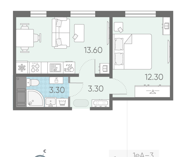 1-комн. кв., от 32.5 м², 1-12 этажи
