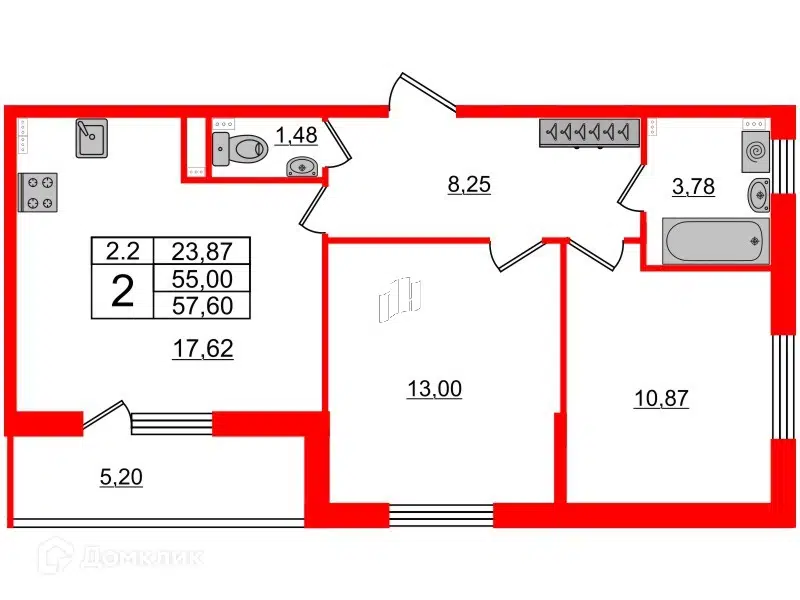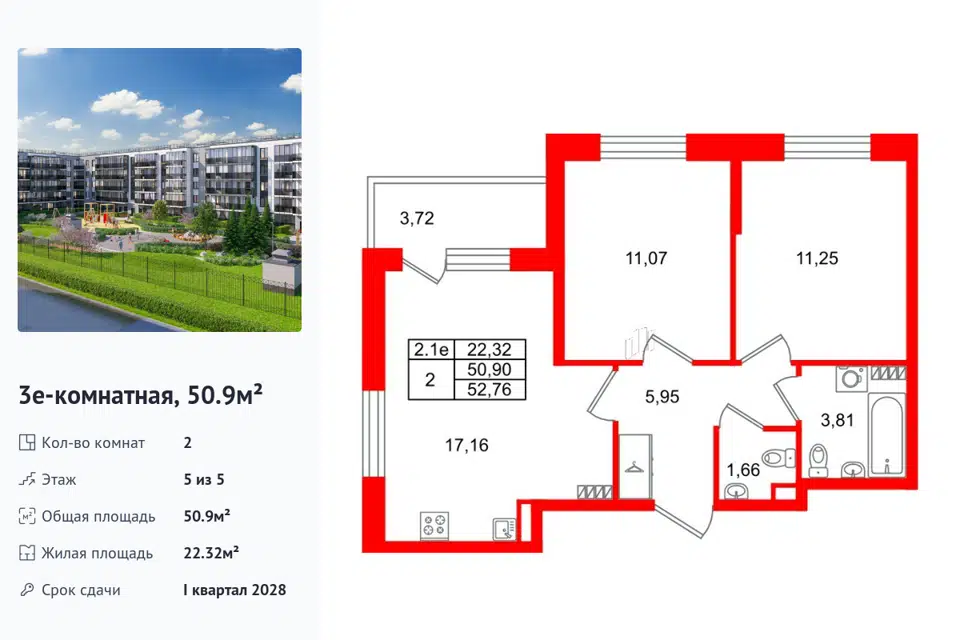 2-комн. кв., от 50.7 м², 1-5 этажи