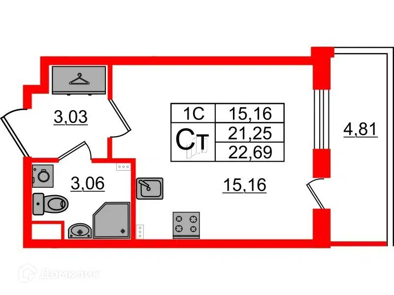 1-комн. кв., от 30.37 м², 1-5 этажи