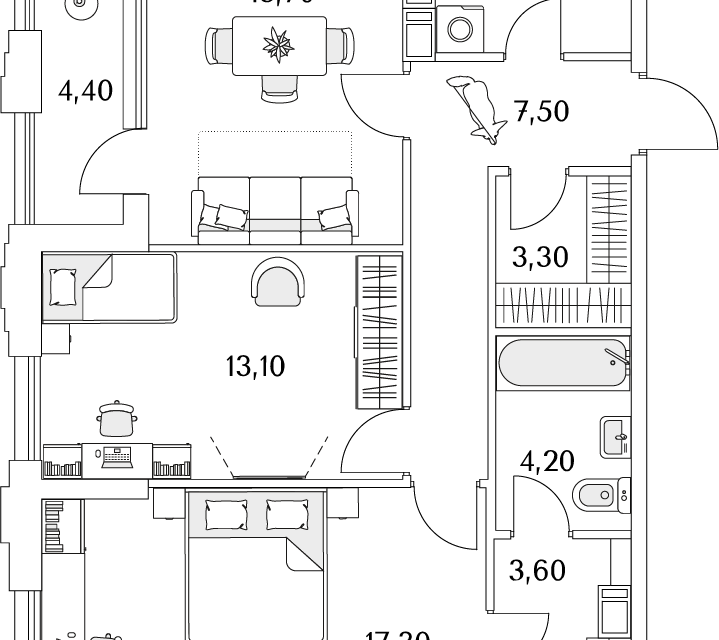 3-комн. кв., 96.4 м², 3/13 этаж