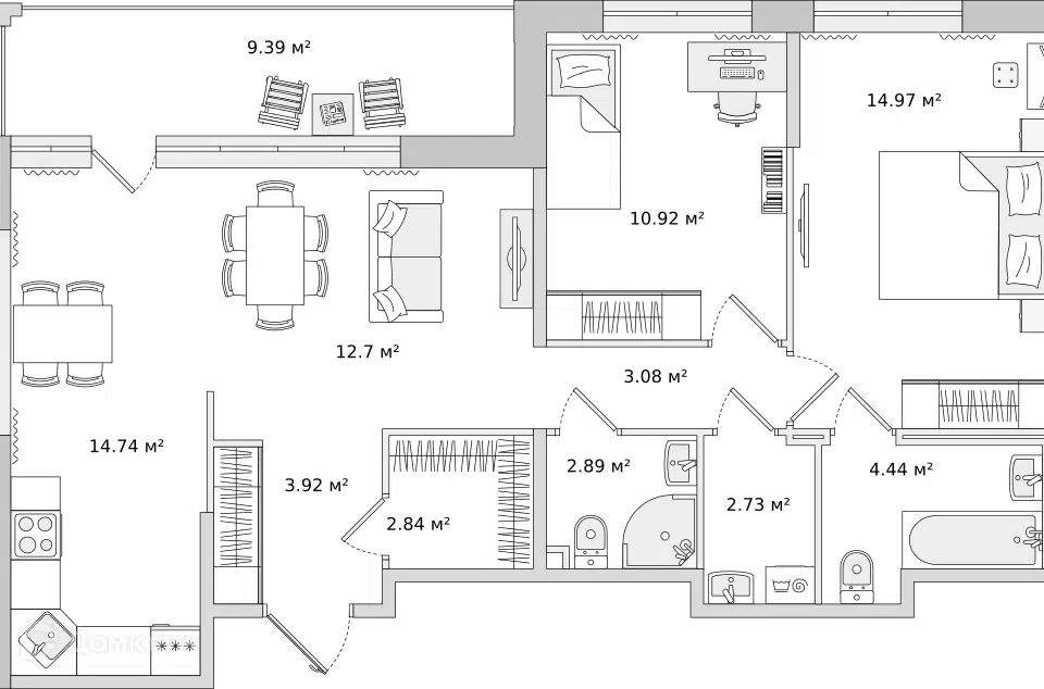 3-комн. кв., от 82.03 м², 2-15 этажи