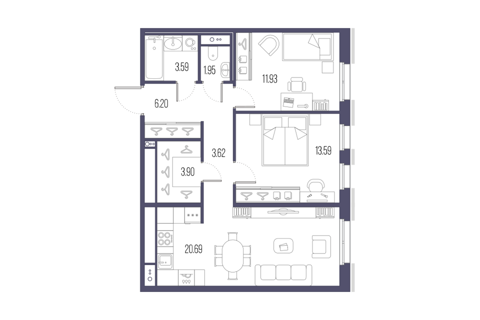 2-комн. кв., от 62.1 м², 2-23 этажи