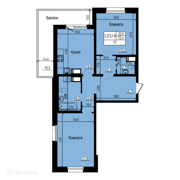 3-комн. кв., от 95.2 м², 2-22 этажи