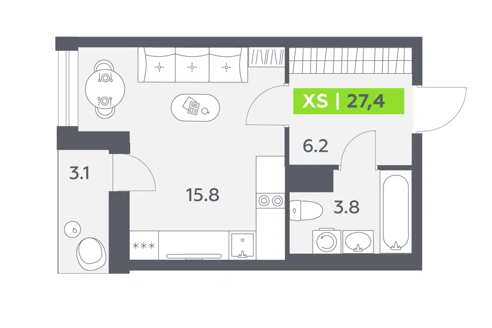 1-комн. кв., от 36.1 м², 2-8 этажи