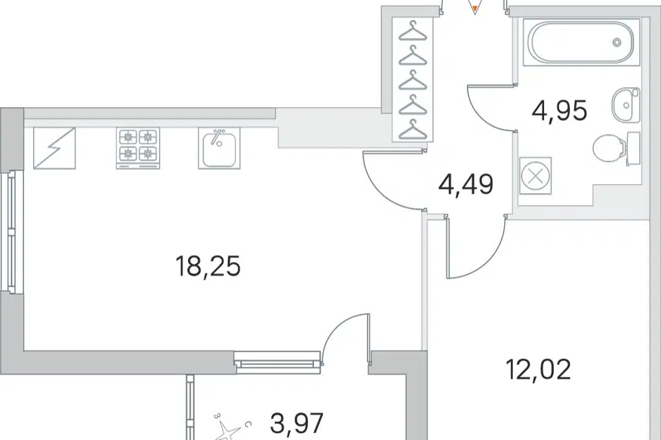 1-комн. кв., от 38.6 м², 2-9 этажи