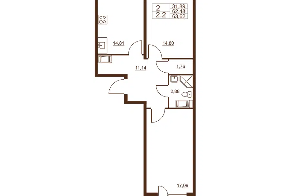 2-комн. кв., от 60.7 м², 8-11 этажи