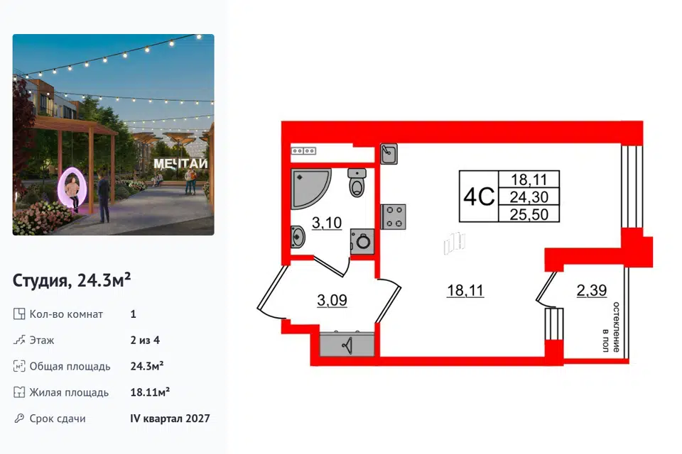 4 из 5 хозяев не хотят сдавать квартиру людям с питомцами, но мы знаем, как грамотно их переубеждатьСтудия, 25.39 м², 5/10 этаж