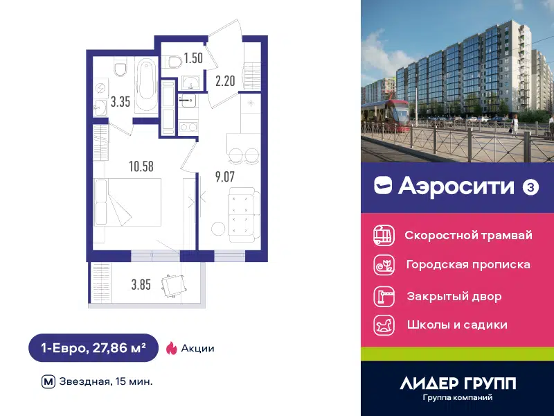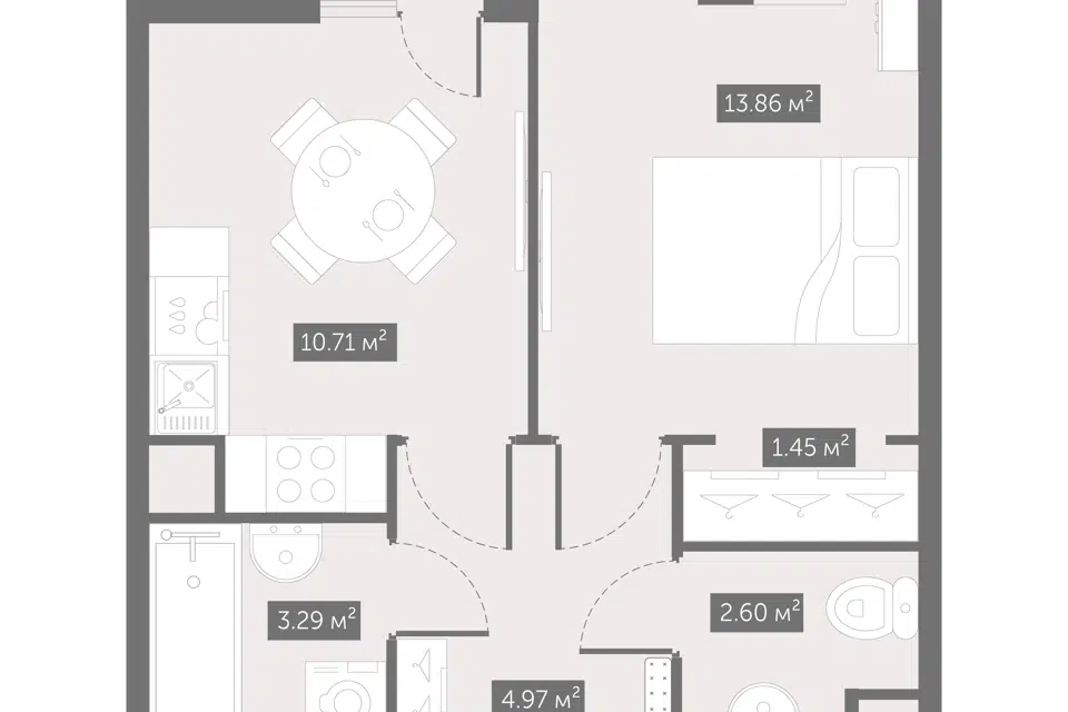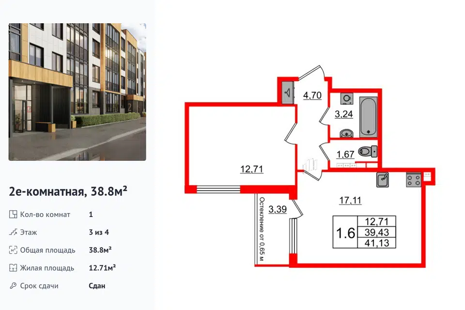 1-комн. кв., от 33.8 м², 3/5 этаж