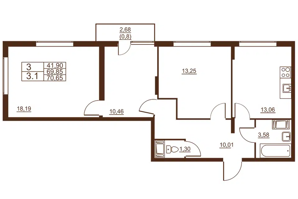 3-комн. кв., от 69.7 м², 2-11 этажи