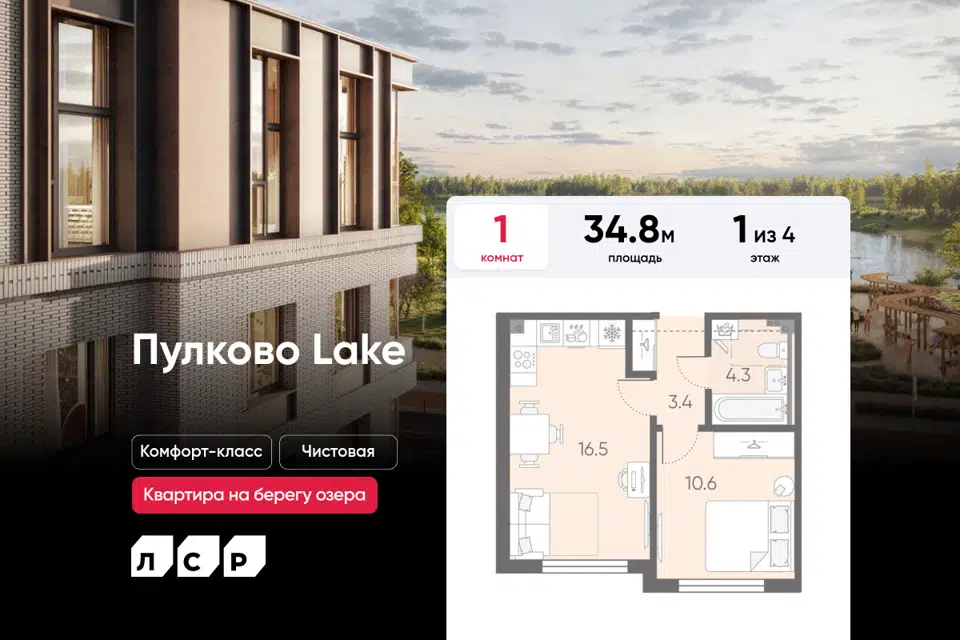 1-комн. кв., от 34.9 м², 1-4 этажи