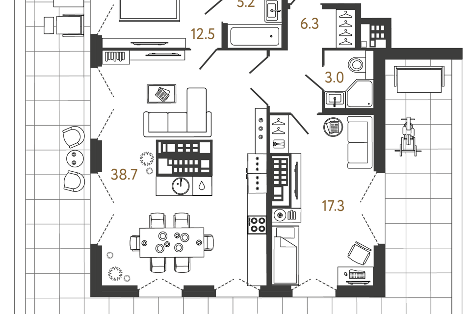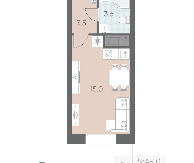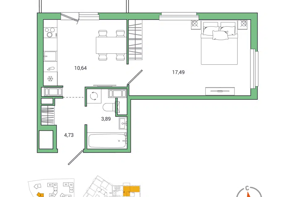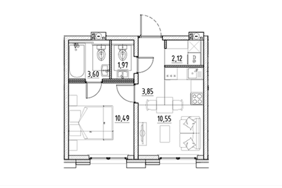 1-комн. кв., от 34.55 м², 2-8 этажи