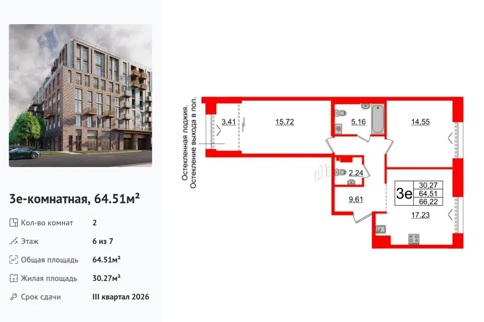 2-комн. кв., от 56.5 м², 1-8 этажи