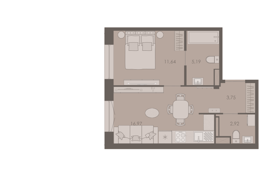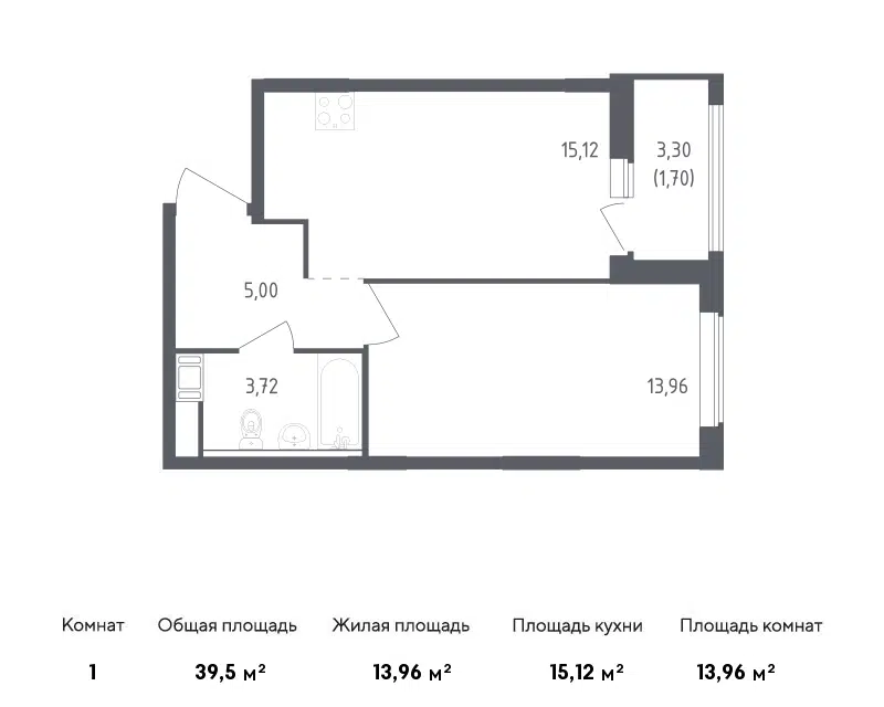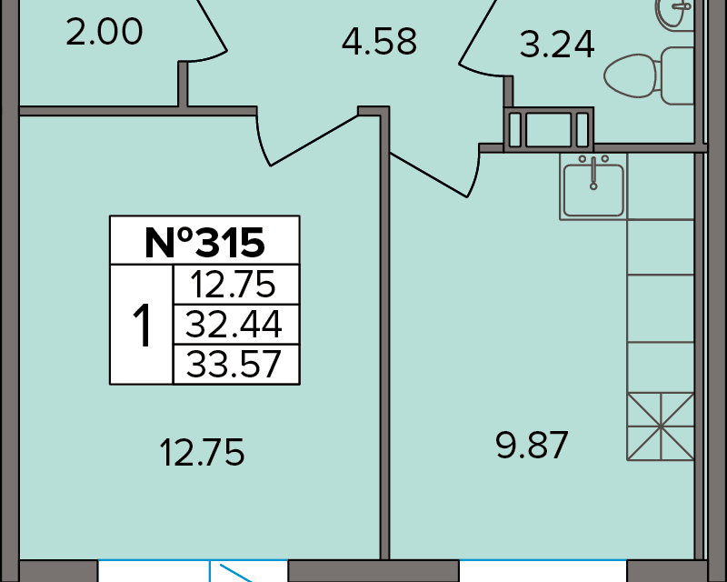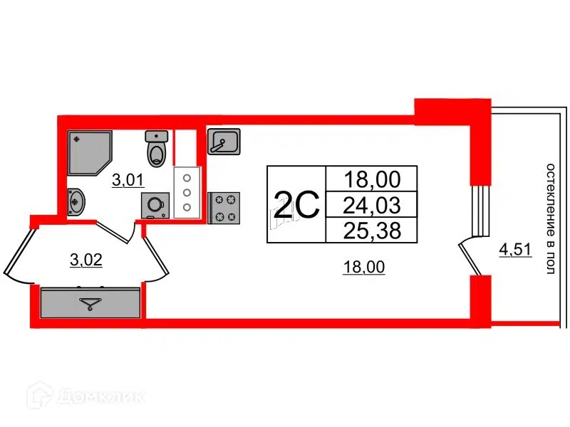 1-комн. кв., от 30.06 м², 2-4 этажи