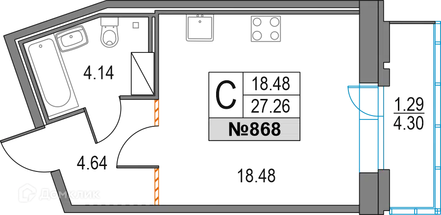 1-комн. кв., от 39.91 м², 2-8 этажи