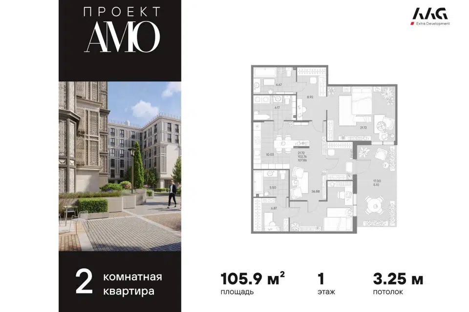 2-комн. кв., 105.9 м², 1/7 этаж