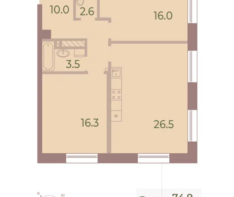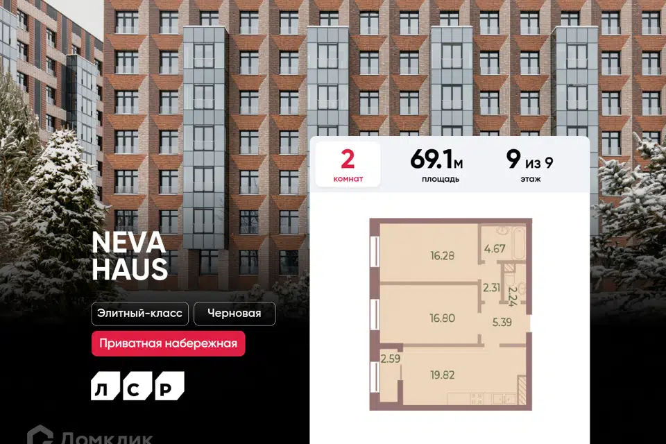 2-комн. кв., 69.1 м², 9/9 этаж