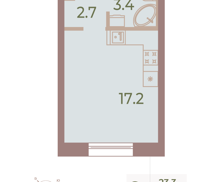 Студия, 23.3 м², 7/9 этаж