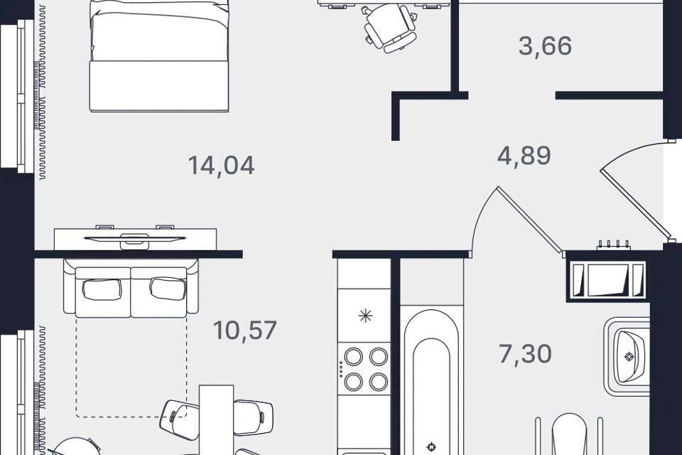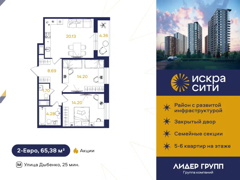 1-комн. кв., от 39.5 м², 2-14 этажи