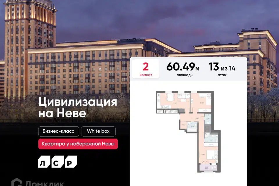 2-комн. кв., от 55.86 м², 2-15 этажи