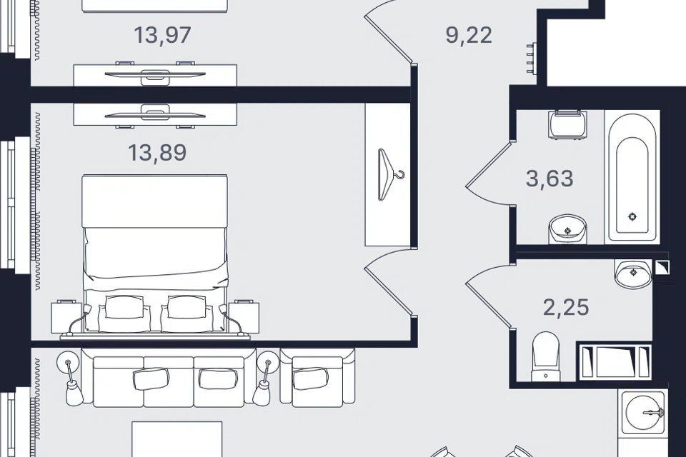 2-комн. кв., от 57.9 м², 2-18 этажи