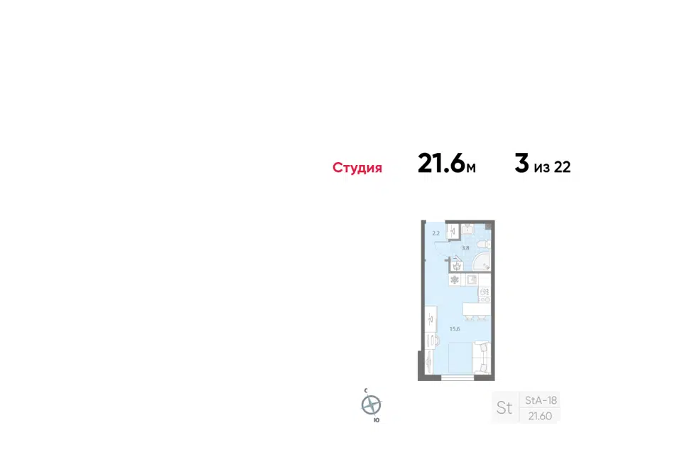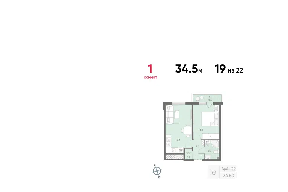 1-комн. кв., от 31.8 м², 2-21 этажи
