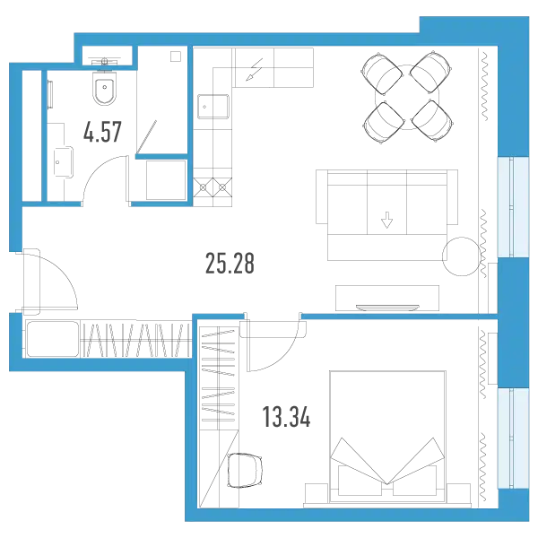 1-комн. кв., от 42.95 м², 7-13 этажи