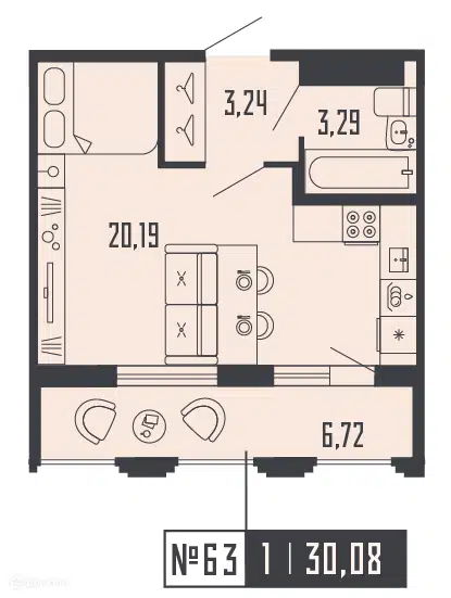 Студия, 30.08 м², 14/25 этаж