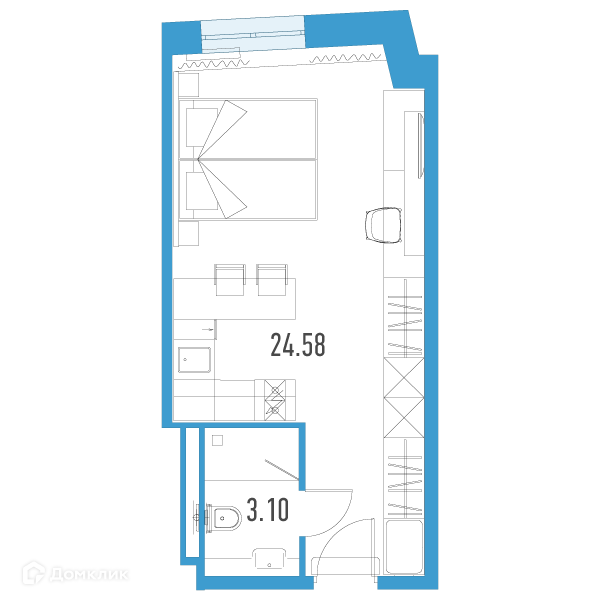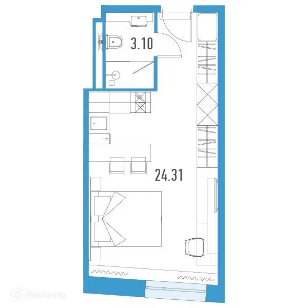 Студия, 24.03 м², 9/12 этаж