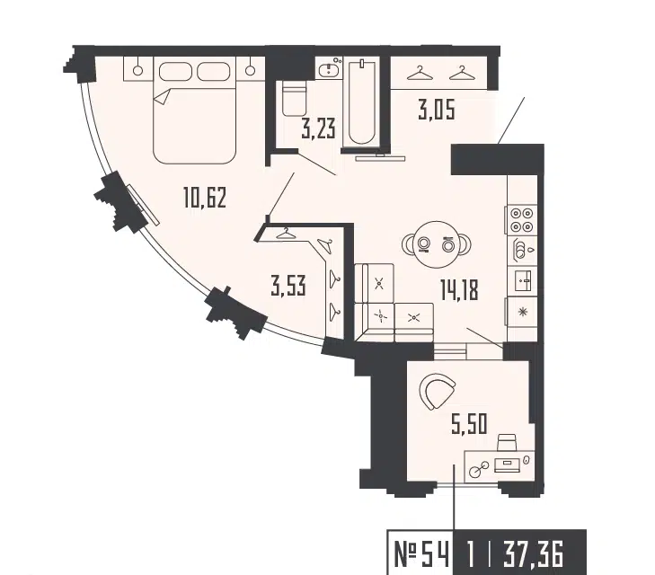 1-комн. кв., от 36.76 м², 13-19 этажи