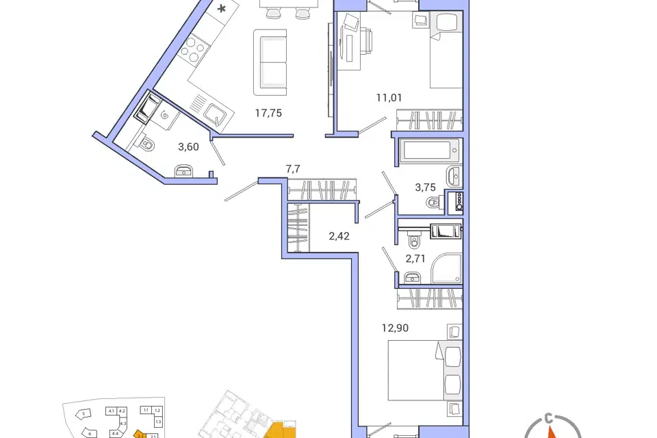 3-комн. кв., от 62.24 м², 2-12 этажи