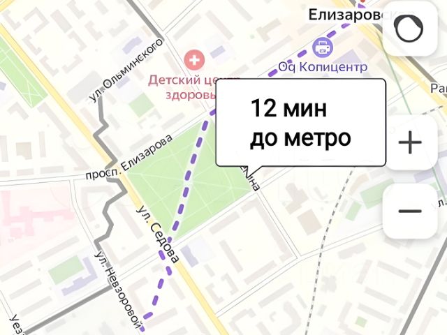 Квартира находится в районе метро "Ломоносовская", до которого можно добраться на автомобиле всего за 4 минуты.