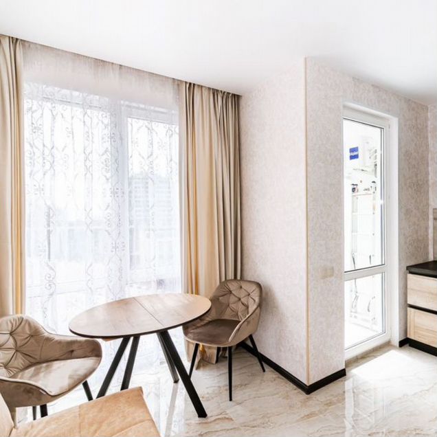 Квартира 22 квадратных метра, расположена в зелёном районе города, ул.Ленина, окружена деревьями и ухоженными газонами. Из окон открывается хороший вид , что обеспечивает естественную красоту и спокойствие. Рядом находятся объекты городской инфраструктуры, такие как детские сады, школы и магазины. Местоположение этой квартиры, позволяет добраться за 30 минут до Красной поляны и до центра Сочи. В пешей доступности находятся развлекательные и спортивные центры, магазины, рынок, транспорт, 10 минут на машине, до пляжа. До Олимпийского парка можно доехать на автобусе за пять минут. В квартире есть всё необходимое для комфортного проживания.