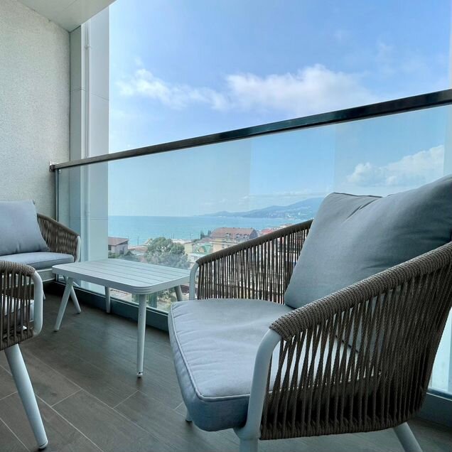 С балкона открывается живописный вид на море и знаменитый ГК Дагомыс.