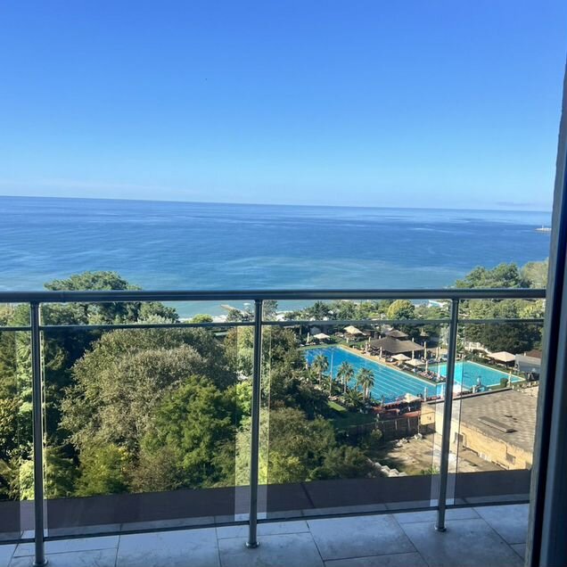 Студия большой площади с панорамным остеклением и балконом с прямым видом на море, парк. Находится на высоком этаже апартаментного комплекса Марина парк, на одной линии с ЖК Панорама Парк, гост Sea Galaxy.