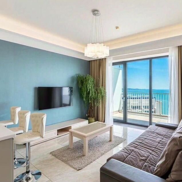 Студия большой площади с панорамным остеклением и балконом с прямым видом на море, парк. Находится на высоком этаже апартаментного комплекса Марина парк, на одной линии с ЖК Панорама Парк, гост Sea Galaxy.