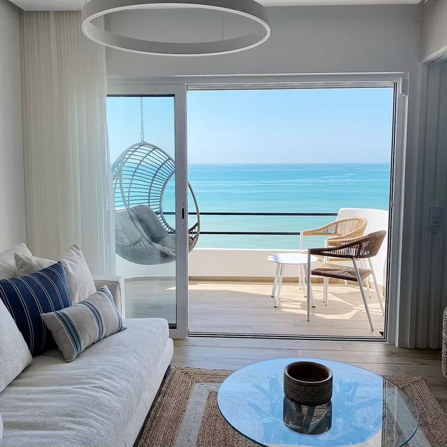 Апартаменты на первой береговой линии в самом центре Сочи. Уникальный формат для жизни и отдыха у моря. Планировка включает две полноценные спальни и два санузла, что обеспечивает максимальный комфорт и приватность. Из каждого окна открывается живописный вид на Черное море, а просторная меблированная терраса станет идеальным местом для утреннего кофе или вечернего отдыха.