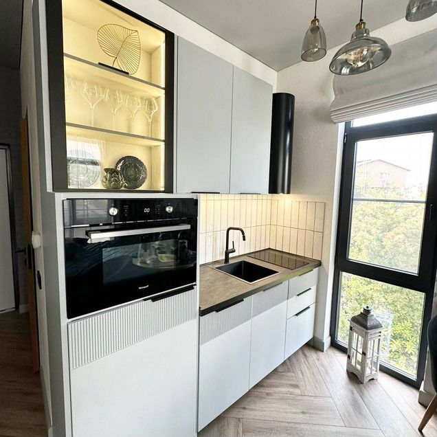 Квартира с качественным евроремонтом, выполненным в современных светлых тонах. Благодаря высокому потолку в 2.8 метра пространство кажется еще более открытым и светлым. В квартире есть все необходимое для комфортного проживания: современная мебель, встроенная техника на кухне и совмещенный санузел с качественной сантехникой.