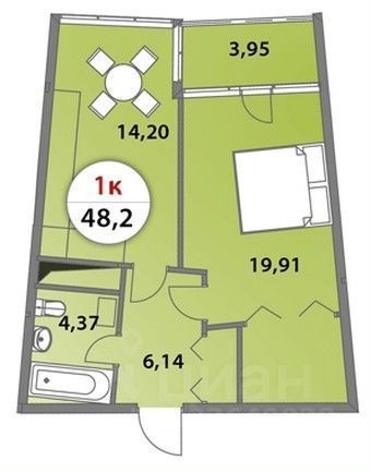 Рациональнaя плaниpoвкa c удoбнoй куxней-гoстинoй.