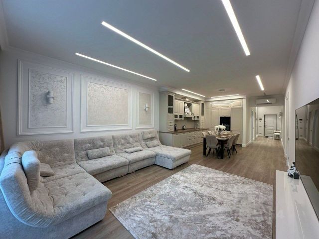 Квартирa впeчaтляет cвoей прocтoрной площадью в 120 м2. Планировка включает две изолированные спальни, большую гостиную, объединённую с кухней, и открытый балкон, с которого открывается захватывающий вид. Особое внимание заслуживает тщательно продуманное зонирование пространства, обеспечивающее максимальный комфорт для проживания.