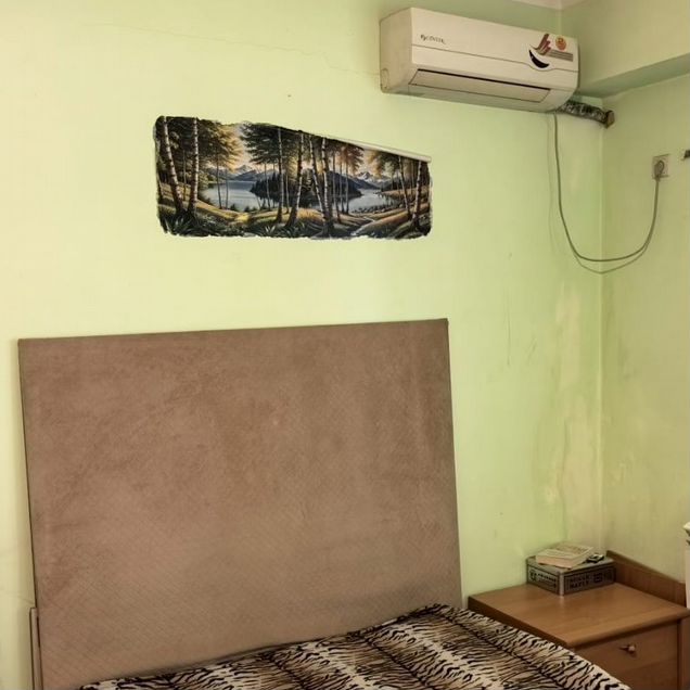 Вся необходимая мебель и техника: кондиционер, плита, стиральная машина, кровать.