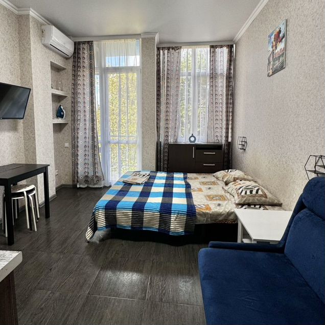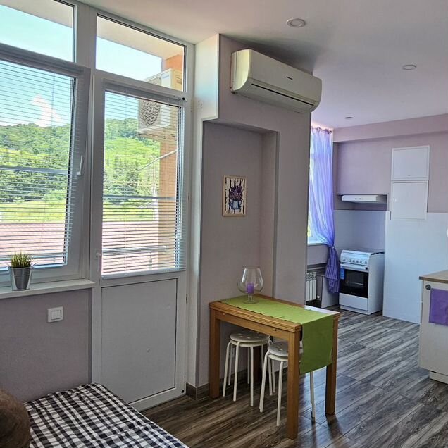 Сдам только на длительный срок студию с выделенной спальной зоной и свежим евроремонтом. Тихое, уютное место, развитая инфраструктура, всё рядом, до моря 500 метров. Прямой вид на море и горы. Квартира полностью укомплектована всем необходимым для комфортного проживания без животных! Цена круглый год одинаковая, без повышения на лето!