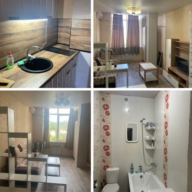 Сдаётся студия площадью 24 кв.м. с евроремонтом на 1 этаже в 4-этажном доме на срок от 11 месяцев. Из техники есть: Телевизор Духовой шкаф Стиральная машина Холодильник Кондиционер Микроволновка Дом - монолитный, окна выходят во двор. Во дворе