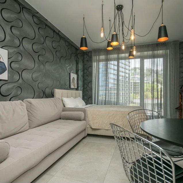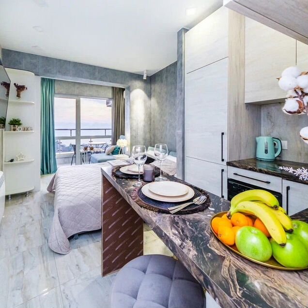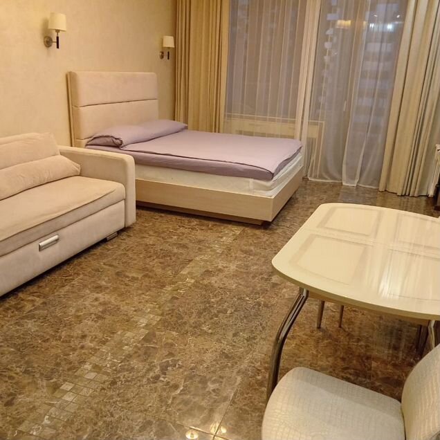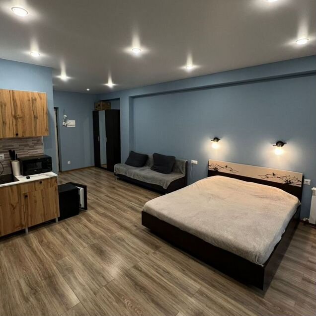Просторная и светлая студия с двуспальной диван-кроватью, идеально подходящая для комфортного проживания двух человек. Уютный балкон станет отличным местом для утреннего кофе или вечернего отдыха.