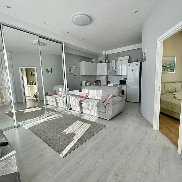 Квартира в жк Новая Александрия, спальня и зал и кухня столовая! Есть большой балкон с диваном, вид на море! Есть подземная парковка.