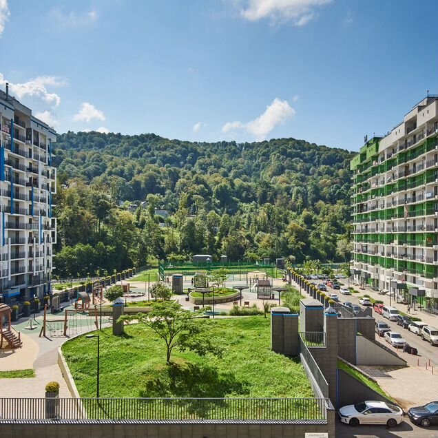 Жилой комплекс отлично подходит для полноценной жизни круглый год! Социальная инфраструктура — 2 минуты пешком до школы и детского сада, поликлиники, а все необходимые магазины и точки бытового обслуживания размещены на территории комплекса.
