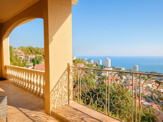 Большие панорамные окна в каждой комнате, из которых открывается шикарный вид на море.