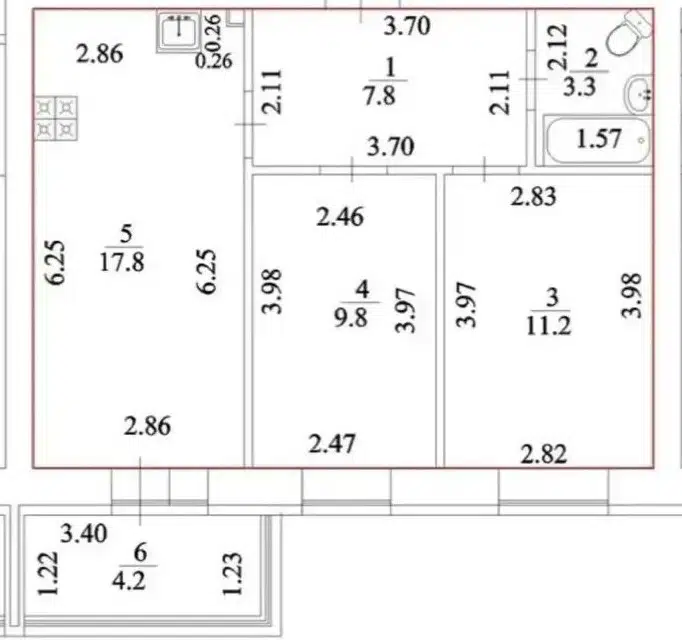 3-комн. кв., 77.5 м², 1/6 этаж