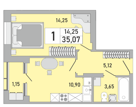 1-комн. кв., 35.07 м², 9/25 этаж