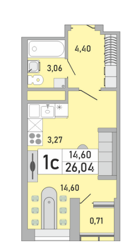 Студия, 26.4 м², 14/25 этаж