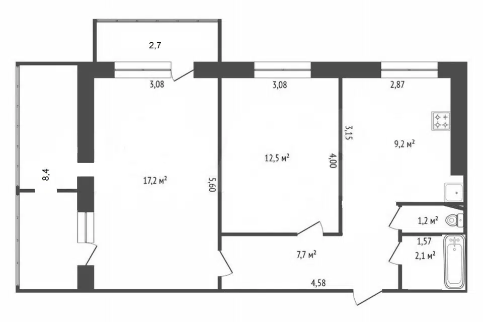 3-комн. кв., 60.2 м², 5/5 этаж